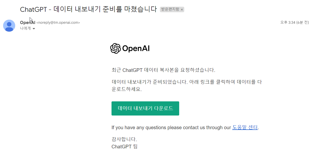 그러면 메일로 온다. 다운기한은 내보내고 일주일 기한으로 다운로드할 수 있다.