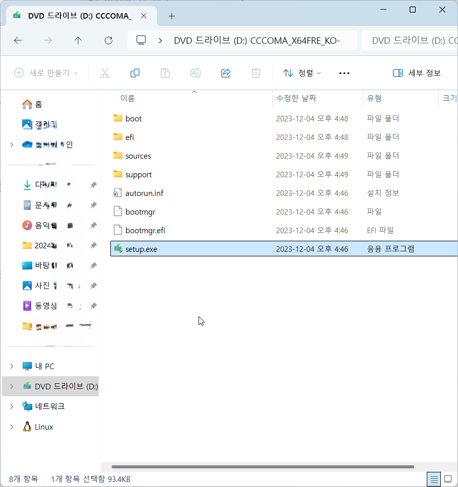 - 다운로드 받은 iso 파일을 더블클릭하거나