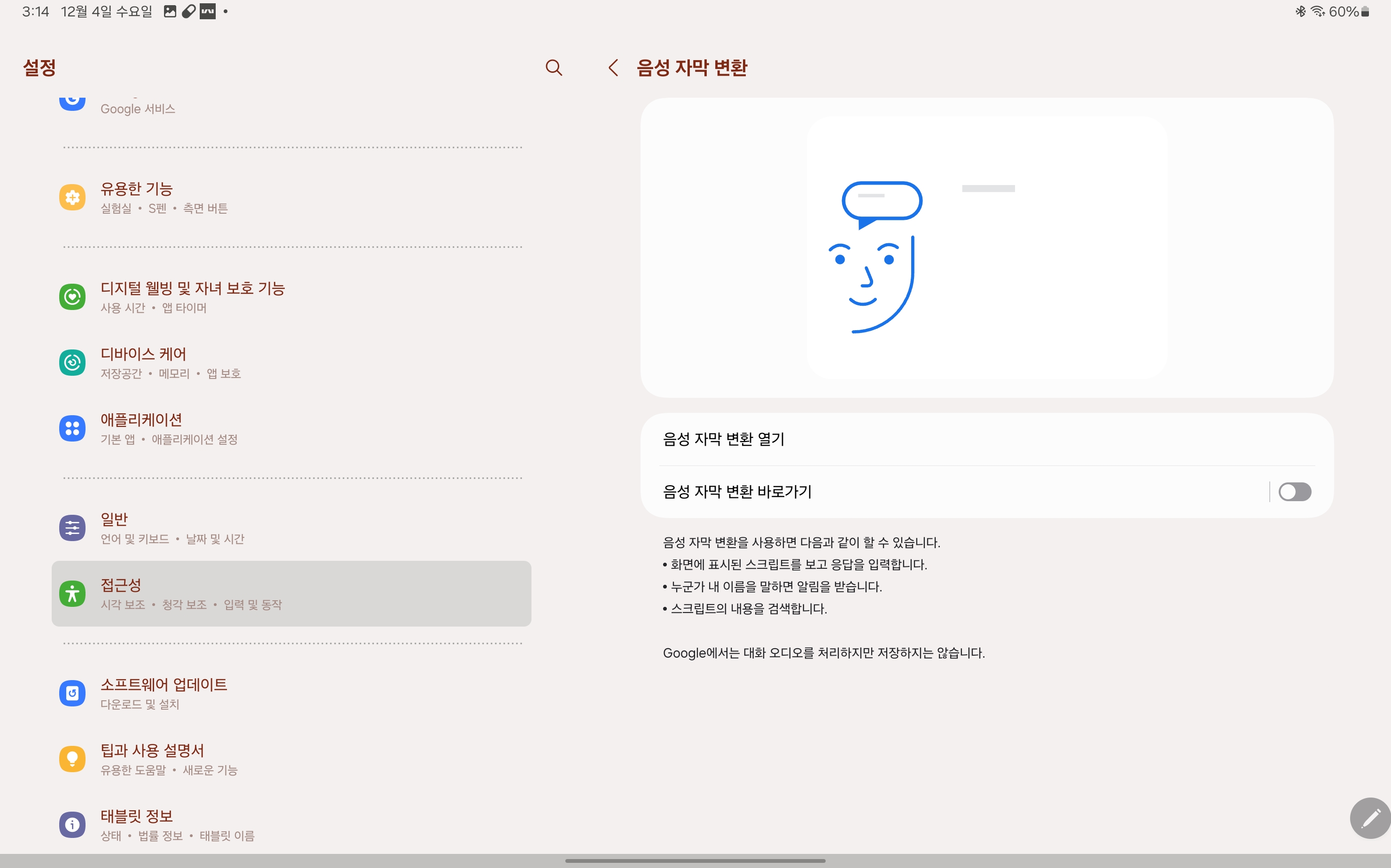 접근성 > 청각보조 > 음성 자막 변환