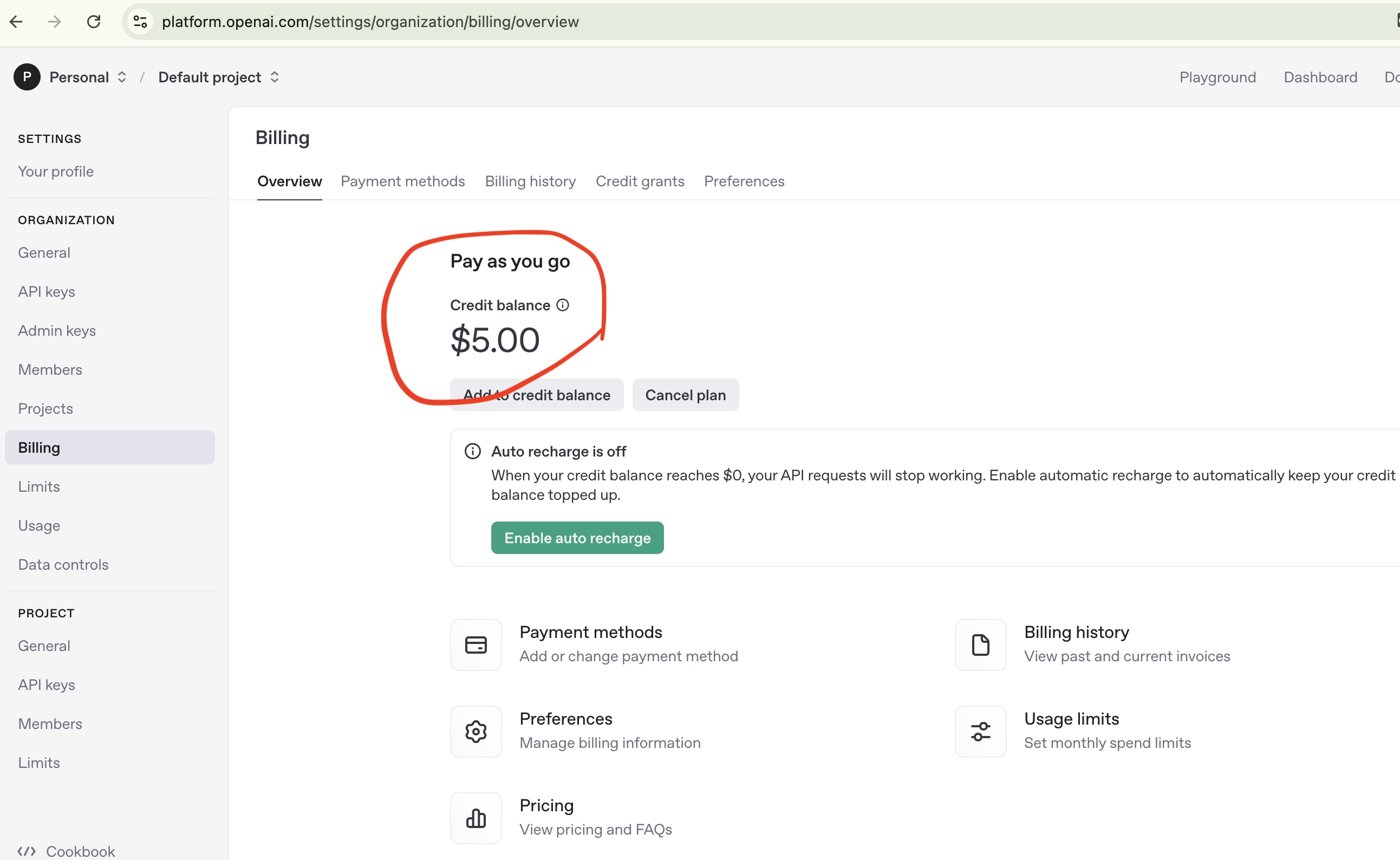 화면 전환되고, 오른쪽 상단에 계정아이콘 옆에 톱니바퀴(설정) > 왼쪽 패널에서 [billing] 보면 된다.