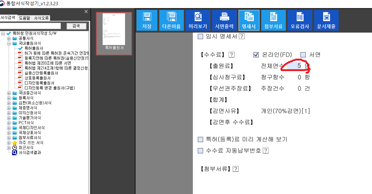 1. 명세서 서식오류 검토 후 파일 저장.